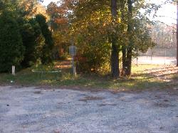 picture below on left). Pull into the gravel area and look for the trail entrance to the left of the tennis